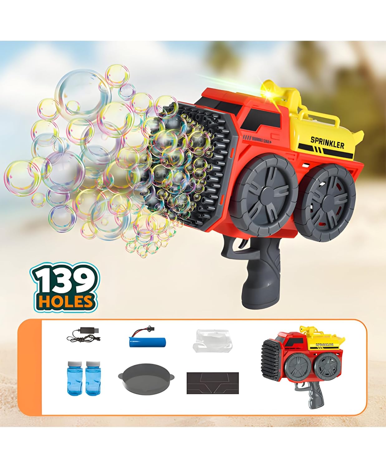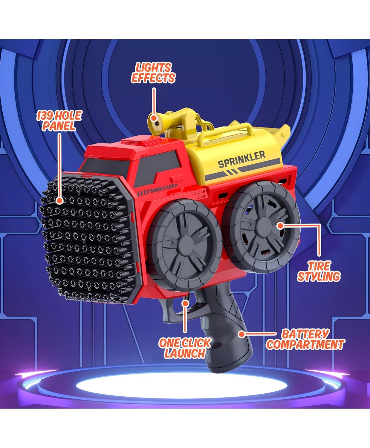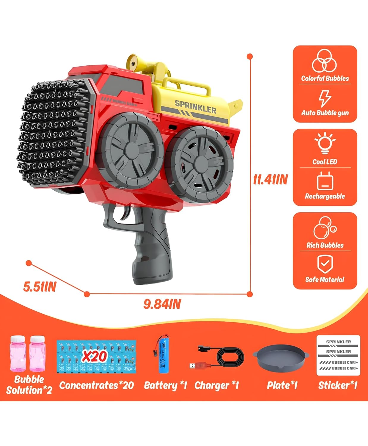 Rev up the excitement with the JOLLYORA 139-Hole Bubble Machine Gun, a vibrant red car-shaped powerhouse that unleashes thousands of bubbles instantly via its high-speed motor and multi-hole wand—perfect for kids craving non-stop bubbly mayhem at parties, picnics, or playtime. The 3.7V 1200mAh rechargeable battery with USB cable ensures hours of uninterrupted action, ditching disposable batteries for eco-friendly, hassle-free fun.