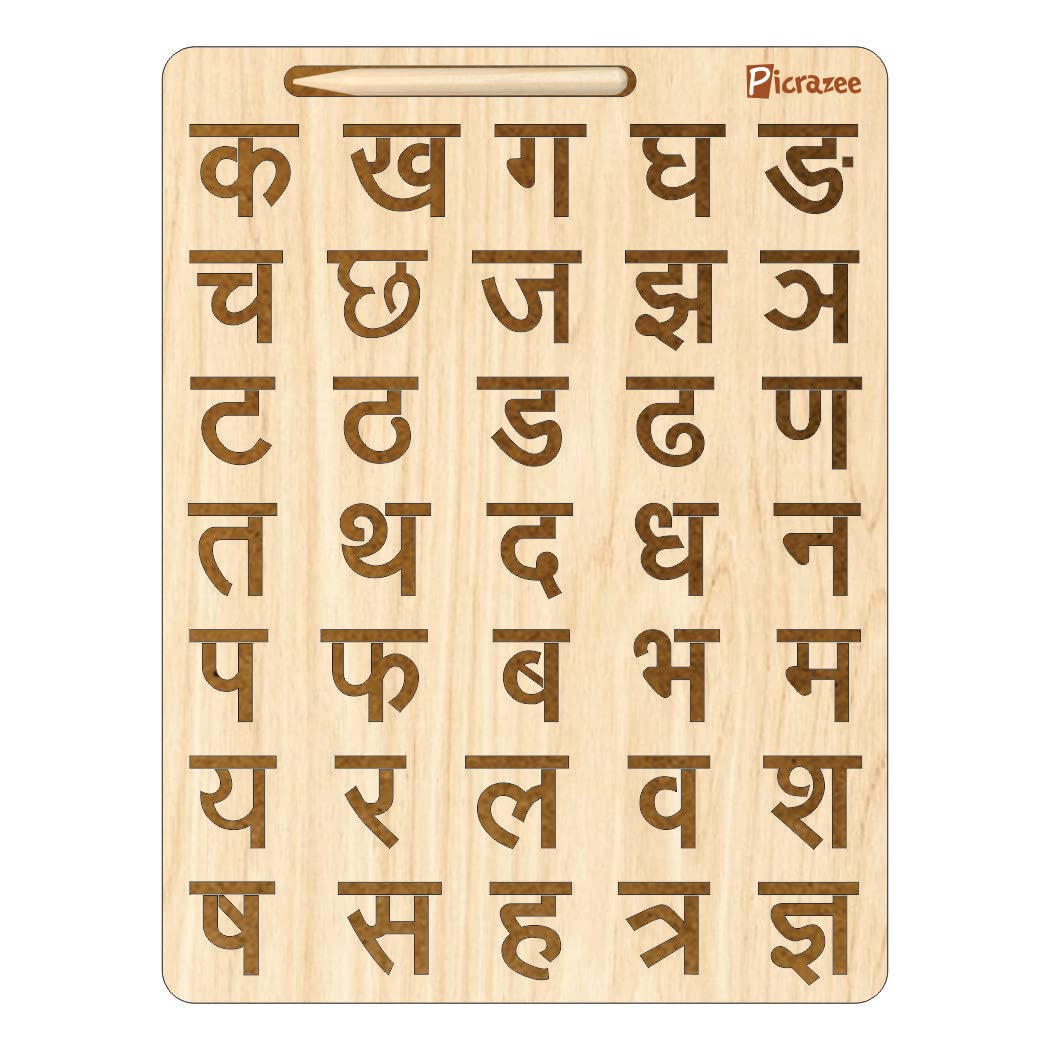 Master writing fundamentals with the Picrazee Educational Wooden Tracing Board Set, featuring four double-sided boards covering small/capital English alphabets, Hindi varnmala, and numbers—complete with safe dummy pencils for stylus-free tracing that transforms preschool practice into playful discovery. Children grip, draw, and follow engraved patterns to recognize shapes, sequences, and letterforms, boosting fine motor skills, hand-eye coordination, and pencil control in home, kindergarten, or outdoor sessions.